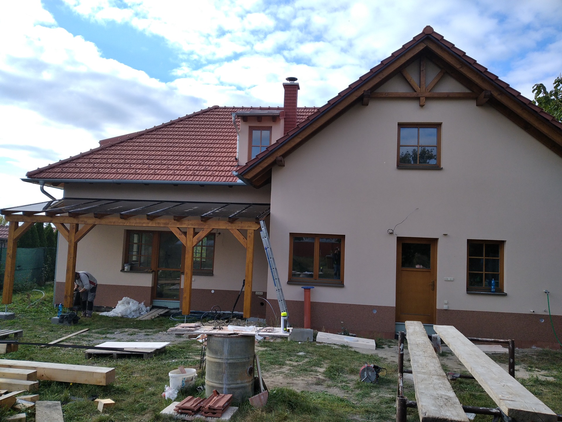 Dřevo, které naše firma zpracuje na pile, využíváme dál na střechách a dřevěných konstrukcích, jako jsou pergoly, altány, garážové stání, terasy a jiné tesařské konstrukce.